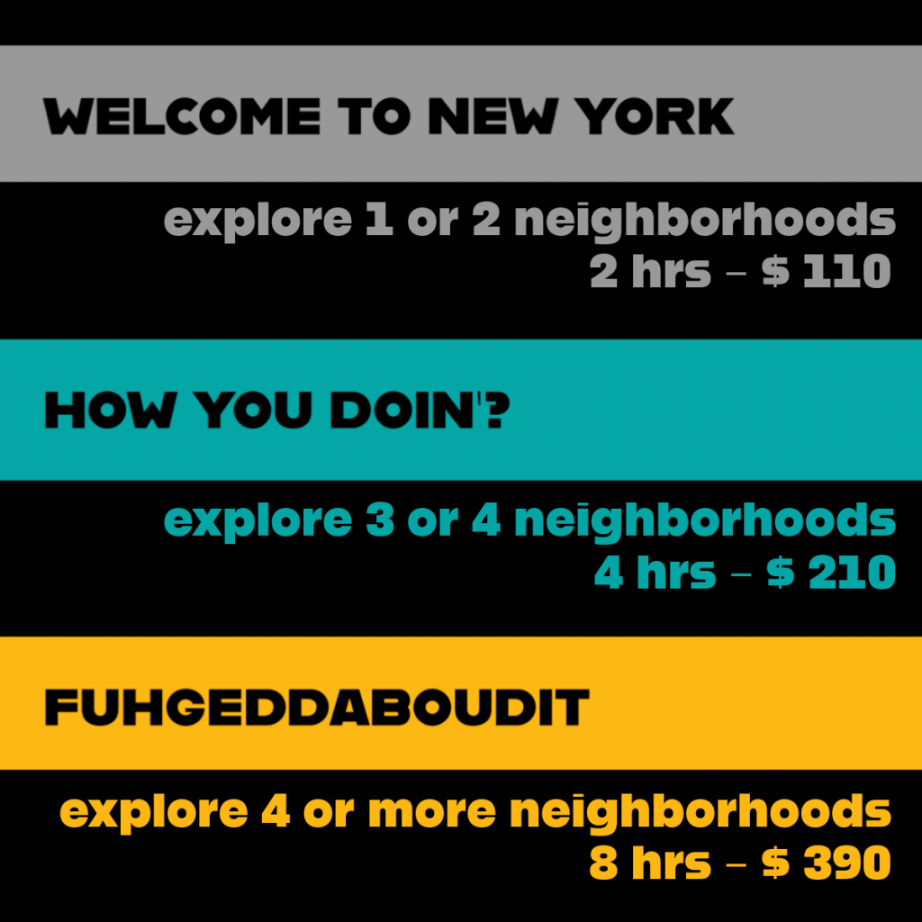 ASK FOR A CUSTOM AND PRIVATE TOUR IN NEW YORK CITY OR PICK ONE OF THE POPULAR FULL-DAY TOURS ADDING YOUR PERSONAL TWIST